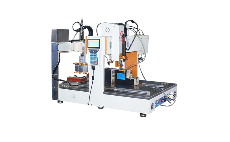 一臺(tái)機(jī)器上完成先對(duì)產(chǎn)品油脂(或膠水)的涂刷,再雙頭鎖付螺絲,一臺(tái)機(jī)實(shí)現(xiàn)多臺(tái)機(jī)的功能,效率高,實(shí)用性強(qiáng);
